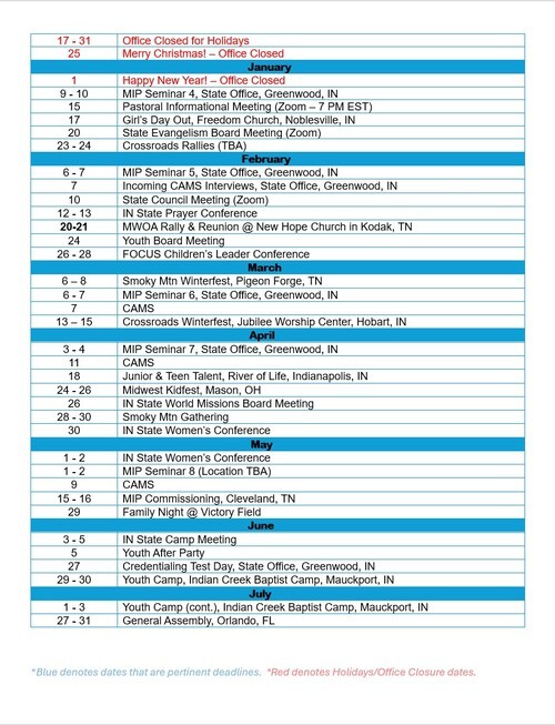 2025-2026 Indiana Youth & Discipleship Calenda